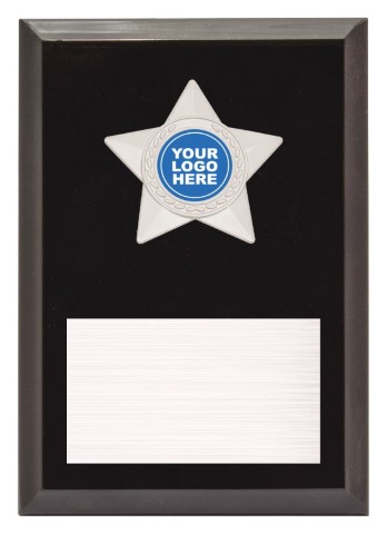 Star Plaques in gloss Black finish include standout star holder to frame your custom logo. 25 or 50mm versions available.