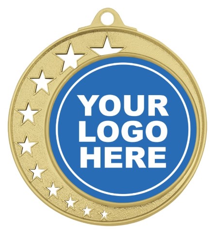Star Series medal in gold, silver and bronze. Special design features stars and commemorative wreath with space for 50mm insert. This larger version of the medals are a truly prestigious award option. Inserts for all activities and consider personalised custom logo centres. Ribbons in all colours and medal presentation boxes also available.