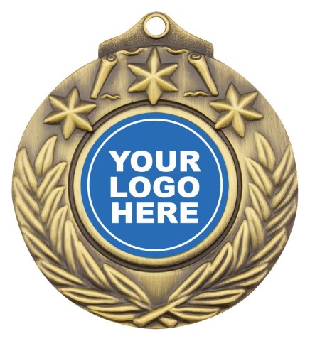 Victory style medal in gold, silver and bronze. Design features both stars and a crossed wreath to commemorate your event or presentation. Inserts available for all activities and consider your custom options. Ribbons in all colours and medal presentation boxes also available.