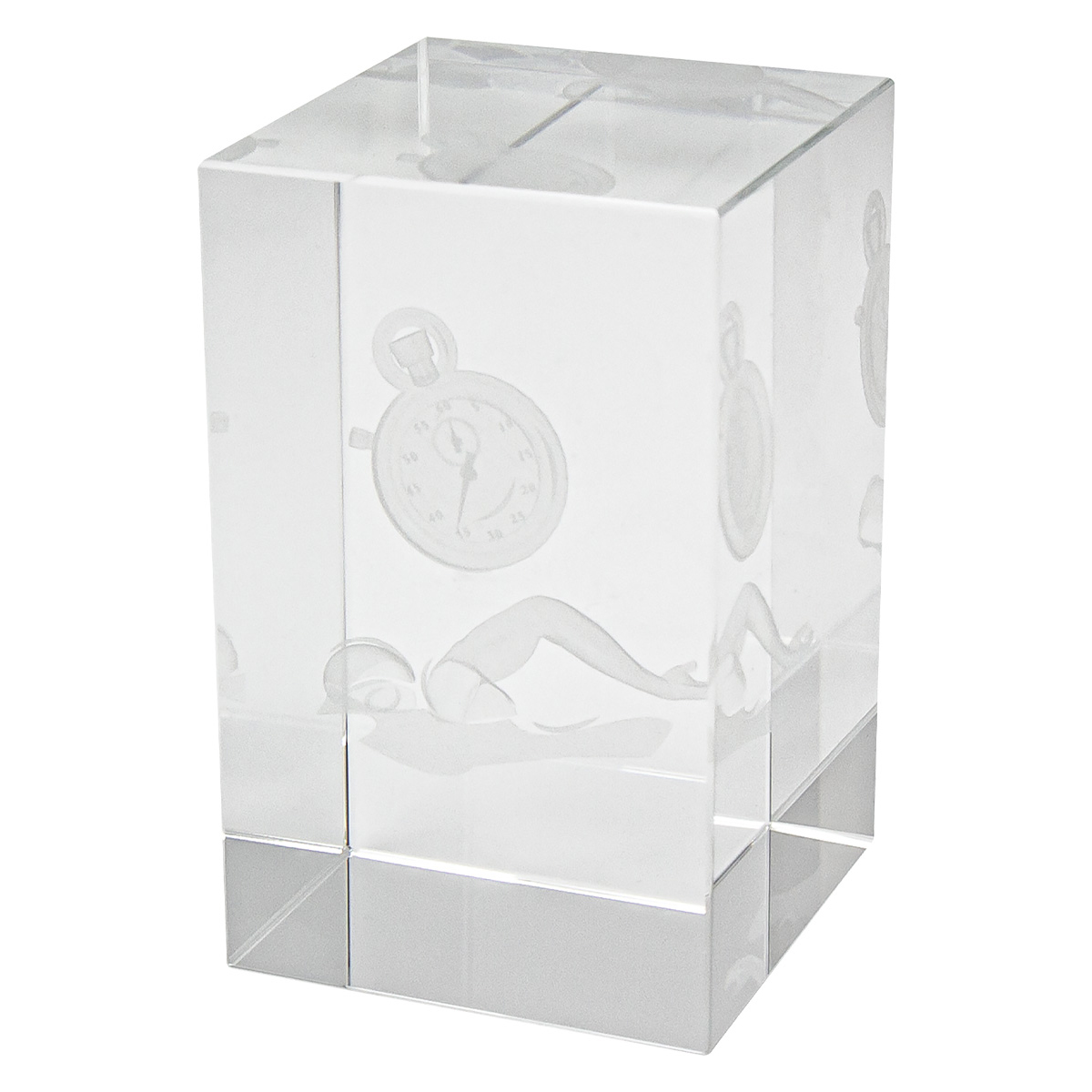 Hologram award for Swimming features 3D theme design with a swimmer in action and classic timepiece. A trusted option for various swimming events and presentations, a prestige crystal block supplied in a presentation gift box.