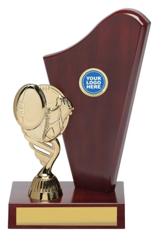 Different wave inspired trophies feature distinctive walnut timber and bright gold footy top for Aussie Rules. Trophy series available in 3 substantial sizes – perfect for your best performing players.