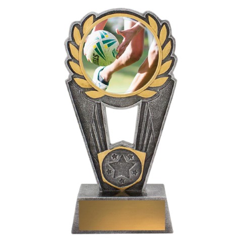 Polaris series offers a striking design of trophy with excellent options for personalisation. Trophies showcase a touch football scene in action over a number of sizes. Space for your 25mm logo if required.