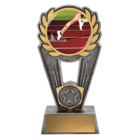 Polaris series offers a striking design of trophy with excellent options for personalisation. Trophies showcase a sprinting theme over a number of sizes. Space for your 25mm logo if required.