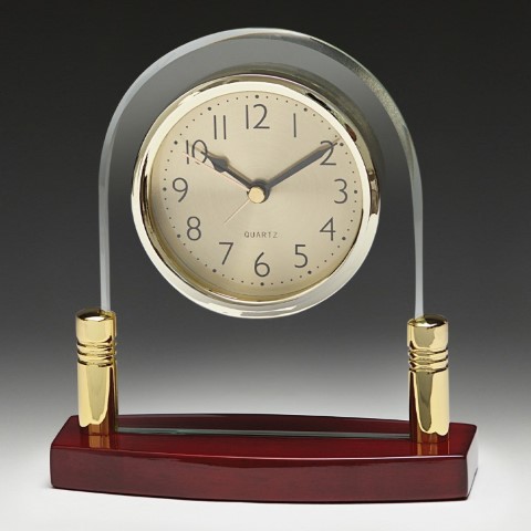 The Traveller Clock exudes luxury in a timeless manner. Room for your engraving under the gold finished time piece. Finished with a piano finish rosewood base.