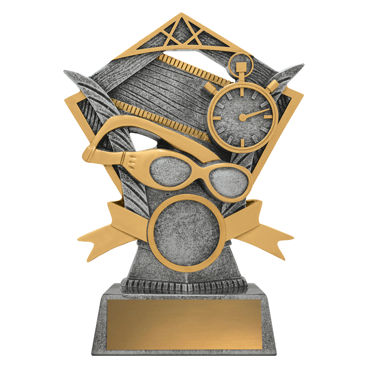 The Valour series of trophies presents a strong design of trophy highlighting the main elements for your sport. Finished in antique silver and gold with space for your custom logo.